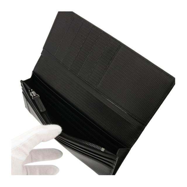 良質なレザーにエンボス加工を施しました。光沢のあるガラスレザーをライン状に切り替えをしたデザインで、ランバンコレクションらしいシャープな仕上がりとなっています。シンプルで機能性も兼ね備えた長財布でギフトにもおすすめです。表のメタルのログマークがさりげないポイントになっています。