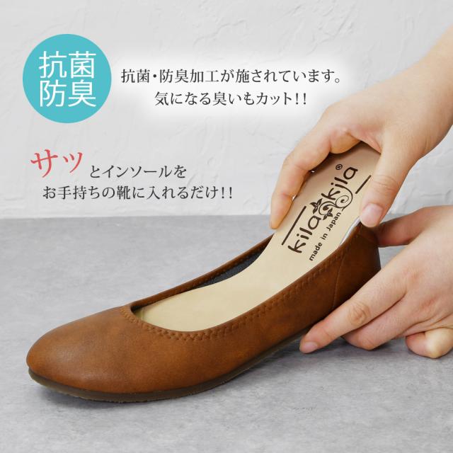 当店shop kilakiaオリジナルインソール。柔らかい高反発クッションが足裏全体に優しくフィット。歩行時の衝撃を吸収し、疲れを和らげます。サッとインソールをお手持ちの靴に入れるだけ!インソールには、抗菌・防臭加工がされているので、気になる臭いもカット!約3mmのクッションで足裏の疲れも軽減♪