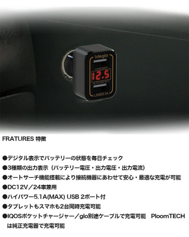 C2054 X-206 USBカーチャージャー 2ポート バッテリーチェッカー付き