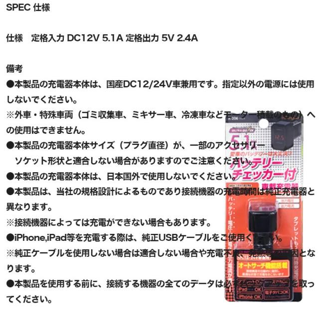C2054 X-206 USBカーチャージャー 2ポート バッテリーチェッカー付きご注文後すぐに商品の手配を行いますのでご注文内容の変更・キャンセルルはお受けできません。注文内容をご確認の上、ご注文をお願いいたします。