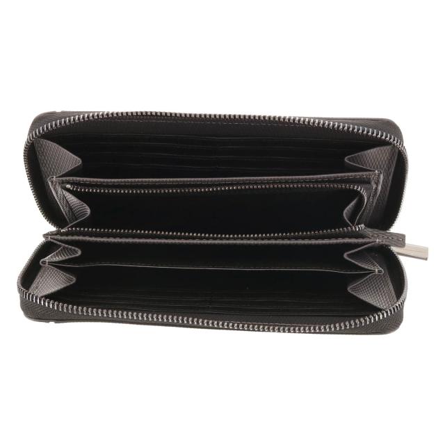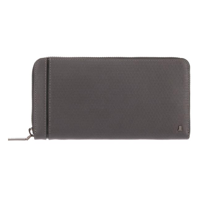 良質なレザーにエンボス加工を施しました。光沢のあるガラスレザーをライン状に切り替えをしたデザインで、ランバンコレクションらしいシャープな仕上がりとなっています。シンプルで機能性も兼ね備えたラウンドファスナータイプの長財布でギフトにもおすすめです。表のメタルのログマークがさりげないポイントになっています。