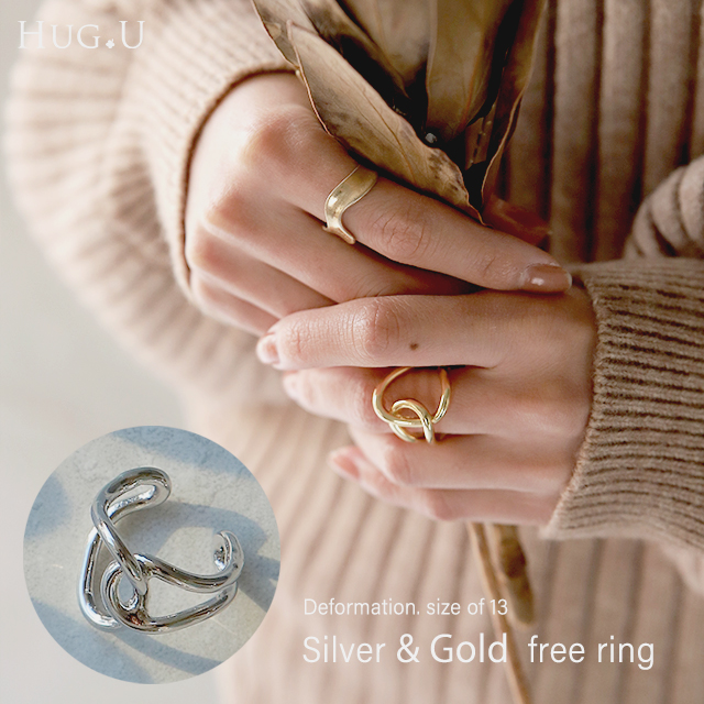 リング フリーリング 変形 ウェーブ レディース シルバーアクセサリー アクセサリー シルバー ゴールド フリー 指輪 シンプル 大ぶり 大きめ 13号 パーティー 冬 秋 秋新作