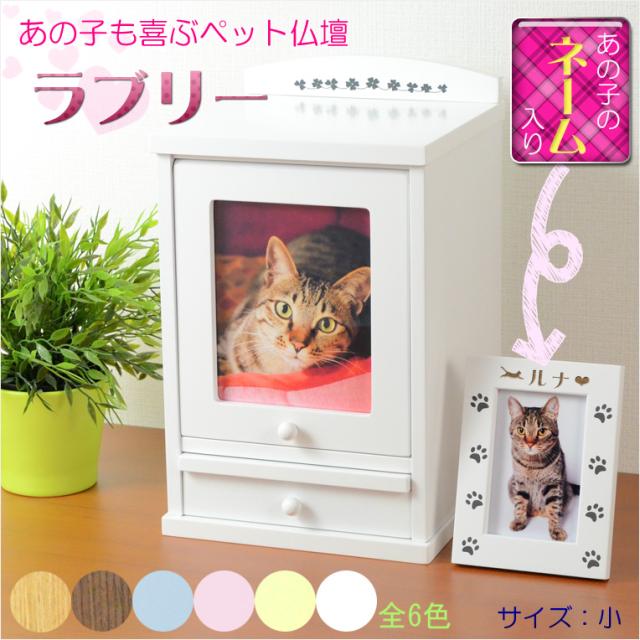 ペット仏壇【ネーム入りフォトフレーム付き:新・ラブリー サイズ小 ホワイト】ミニ仏壇 家具調仏壇 メモリアルボックス 納骨 骨壷 ペット供養 足跡マーク 写真立て 名入れ無料 送料無料