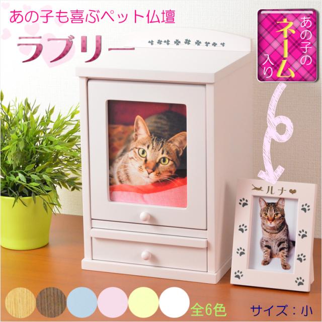 ペット仏壇【ネーム入りフォトフレーム付き:新・ラブリー サイズ小 パステルピンク】ミニ仏壇 家具調仏壇 メモリアルボックス 納骨 骨壷 ペット供養 足跡マーク 写真立て 名入れ無料 送料無料