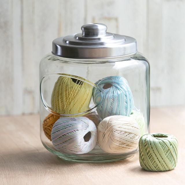 毛糸や布の端切れなど雑貨を収納してインテリアとしても飾るのもオシャレです。また、透明ガラスで中身が見えるので、ふたを開けて中身を確認する必要がなく、ぱっと見て内容物が分かり便利です。