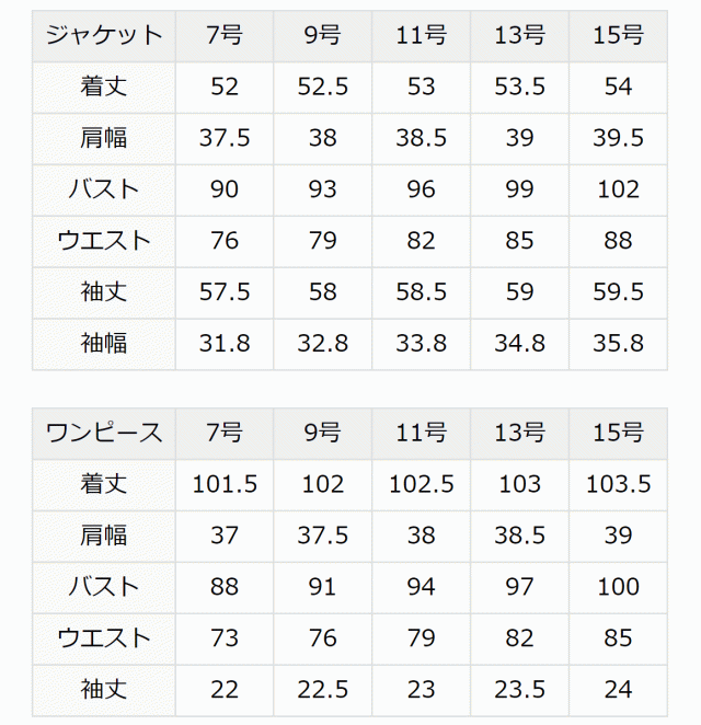 | 肩パッド | ジャケット:○ ワンピース:× |