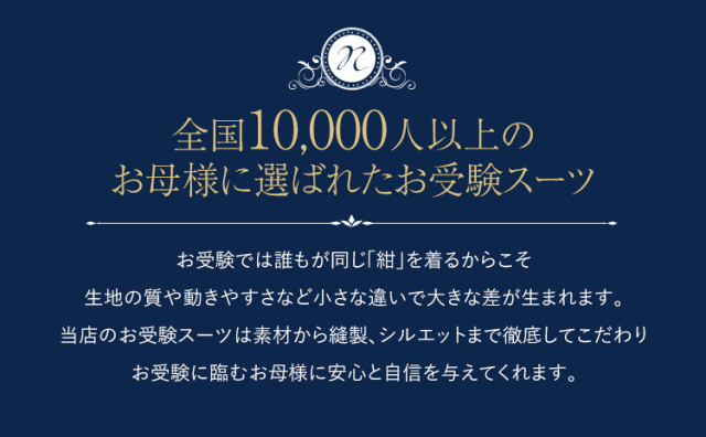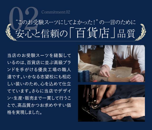 ・当店のお受験スーツを縫製しているのは、百貨店に並ぶ高級ブランドを手がける優良工場の職人達です。いかなる志望校にも相応しい装いのため、心を込めて仕立てています。さらに当店でデザイン・生産・販売まで一貫して行うことで、高品質かつお求めやすい価格を実現しました。