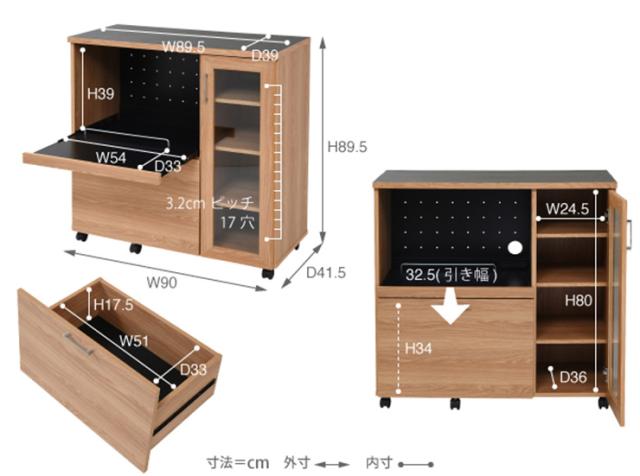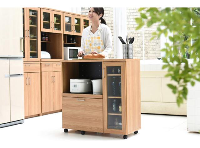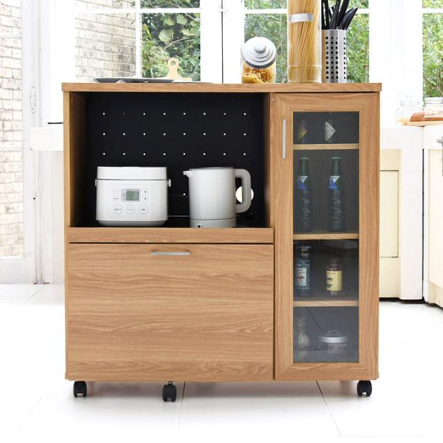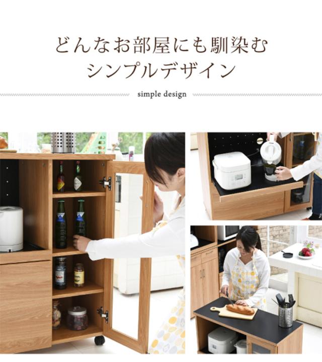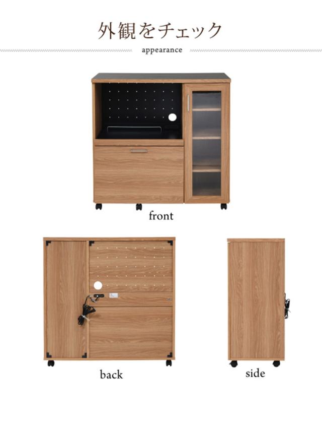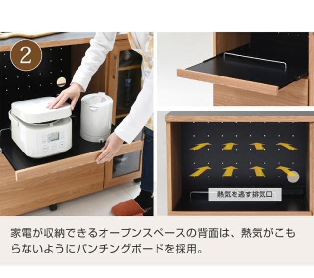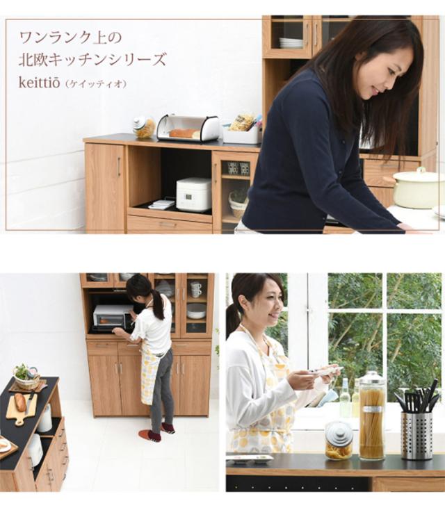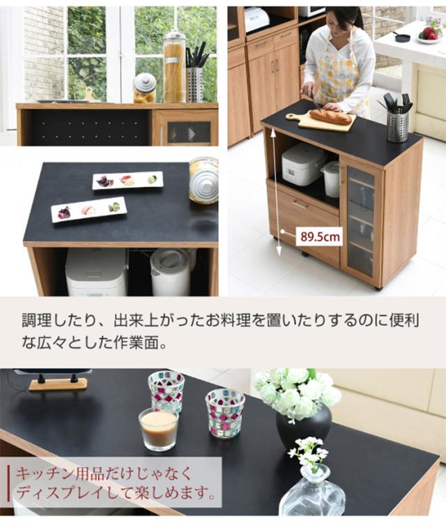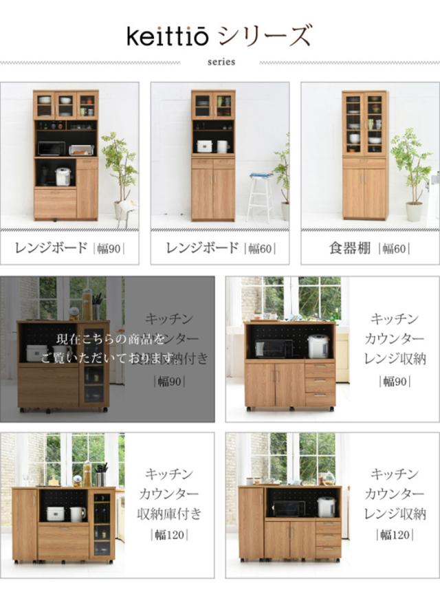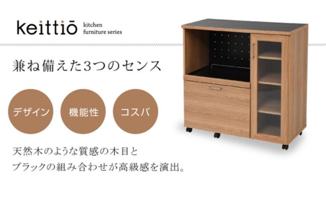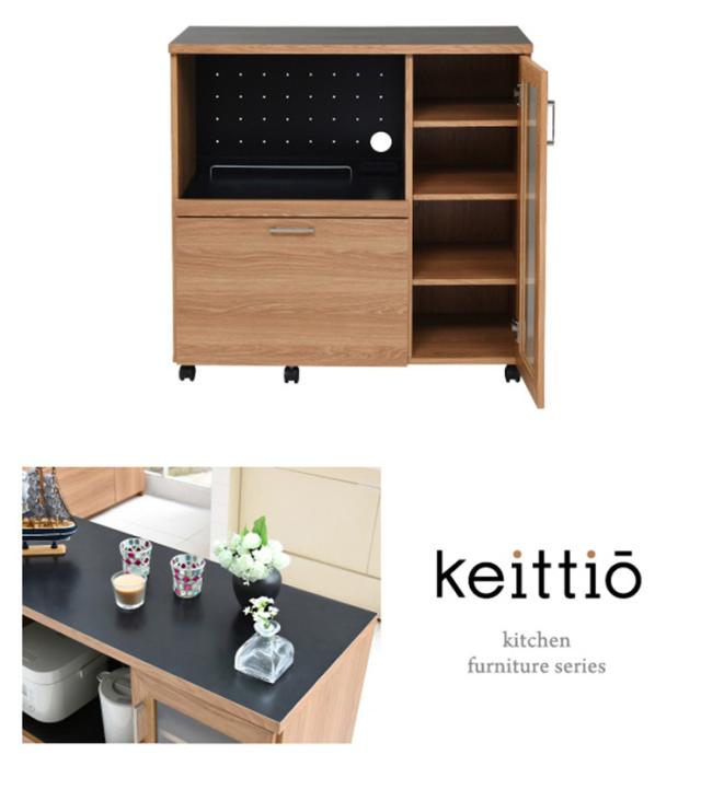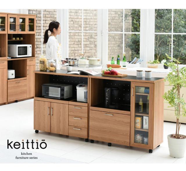 【キャスター・コンセント付き】keittio(ケイッティオ) キッチンカウンター 食器収納付き FAP-1022 幅90cm 収納 キッチン 台所 ラック 棚 食器 キッチンラック ロータイプ おしゃれ モダン スリム キャビネット ストック