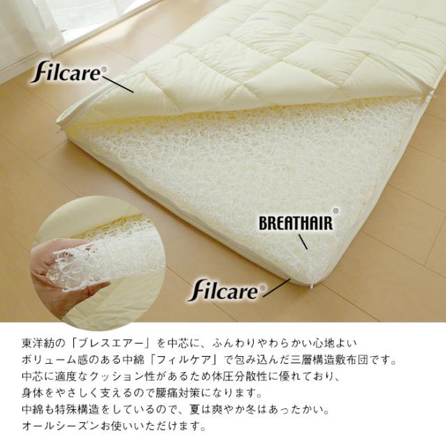 ボリューム感のある中綿「フィルケア」で包み込んだ三層構造敷布団です。