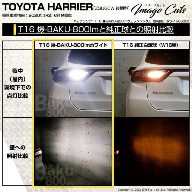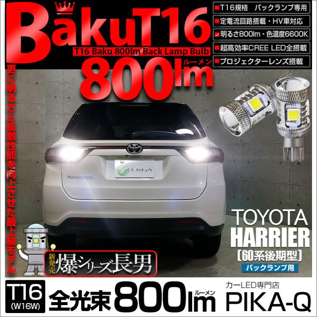 トヨタ ハリアー (60系 後期) 対応 LED バックランプ T16 爆-BAKU-800lm ホワイト 6600K 2個 後退灯 5-A-1