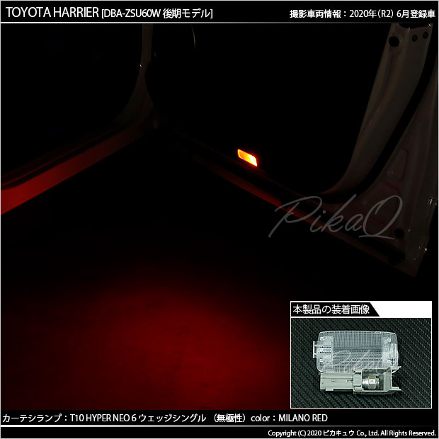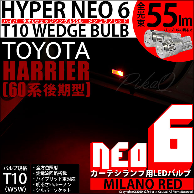 TOYOTA HARRIER[60系 後期モデル]対応カーテシランプ用LEDバルブ T10 HYPER NEO 6ウェッジシングル球 LEDカラー:ミラノレッド 1セット2個入り | |||