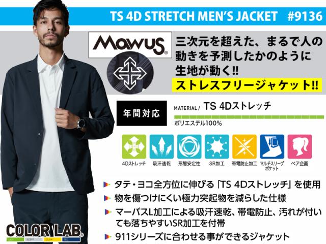 TS DESIGN 4Dメンズステルスジャケット 男性用 9136 藤和 通年作業服 スーツ風 テーラードジャケット サイズS〜4L