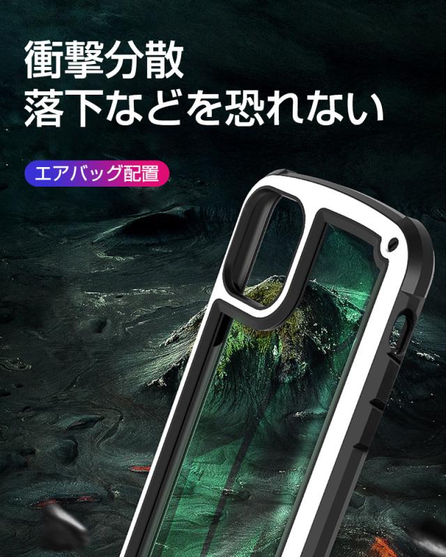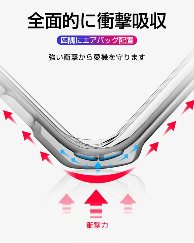 【エアバッグ設計耐衝撃】TPUバンパーとエアバッグの設計により、衝撃に対抗できます。落下時に生じた強力衝撃を吸収し、そして四隅に分散してスマホ本体を保護できます。