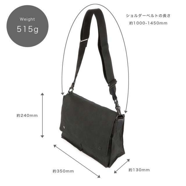 実寸:縦 240mm × 横 350mm × 厚 130mm ※ショルダーベルト長さ約1000mm-1450mm