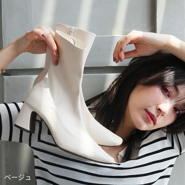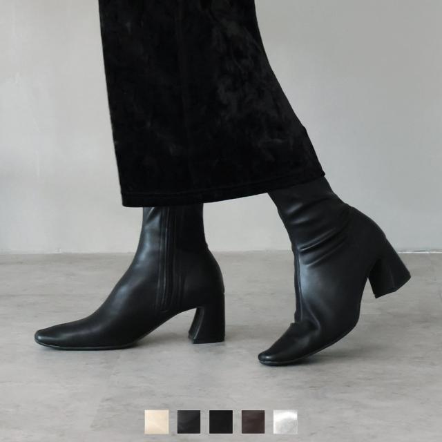 新色登場*スクエアトゥチャンキーヒールストレッチミドルブーツ