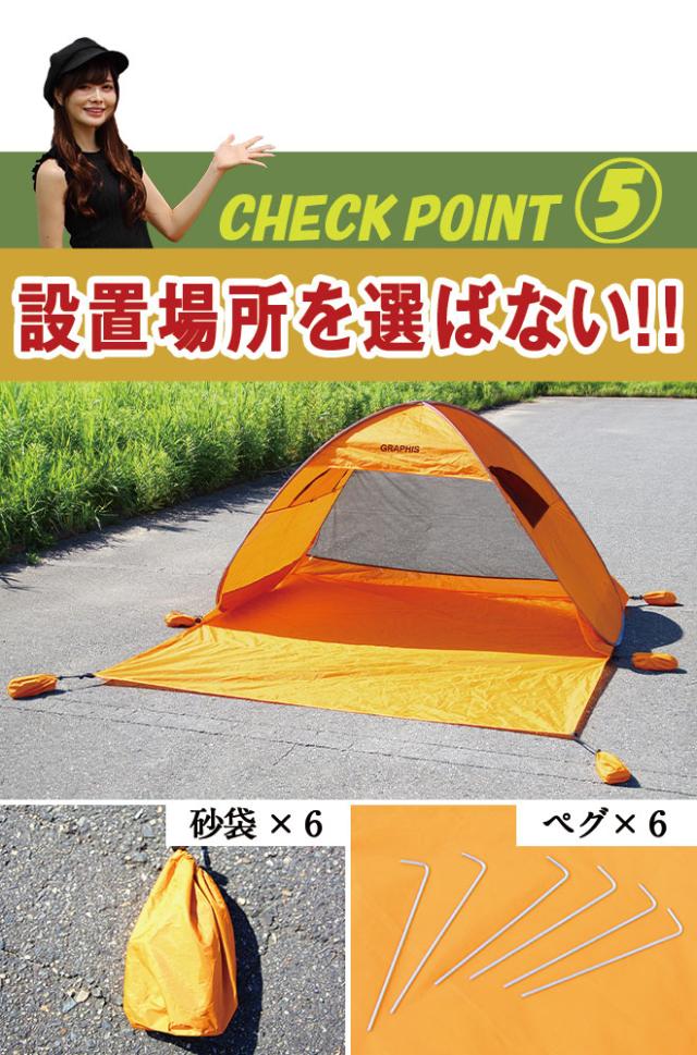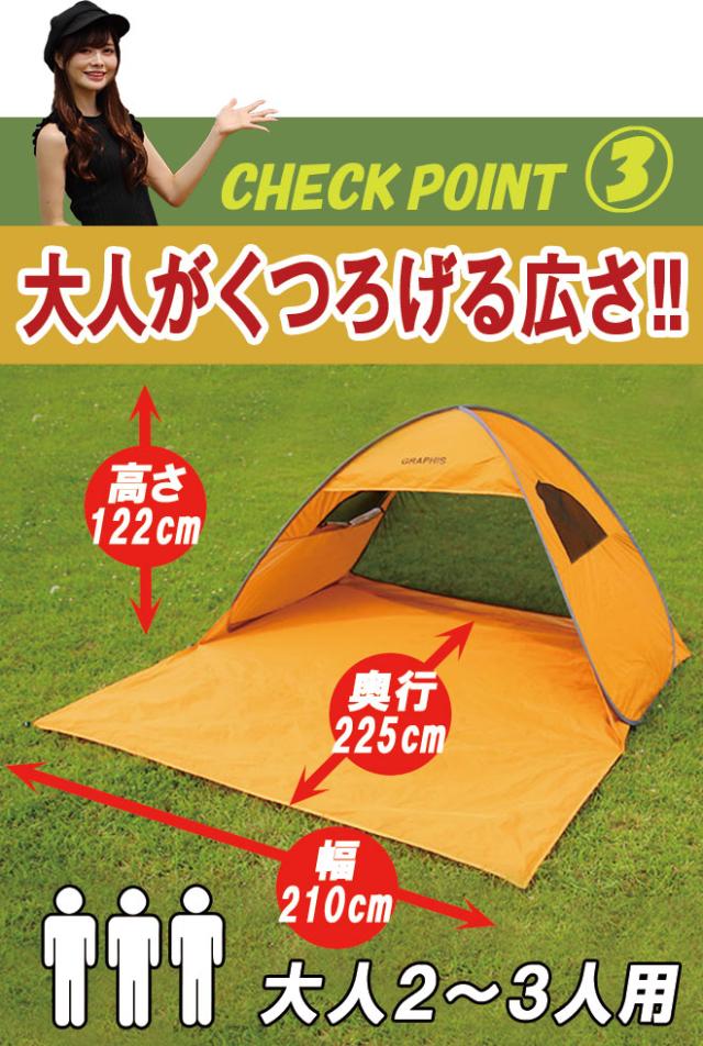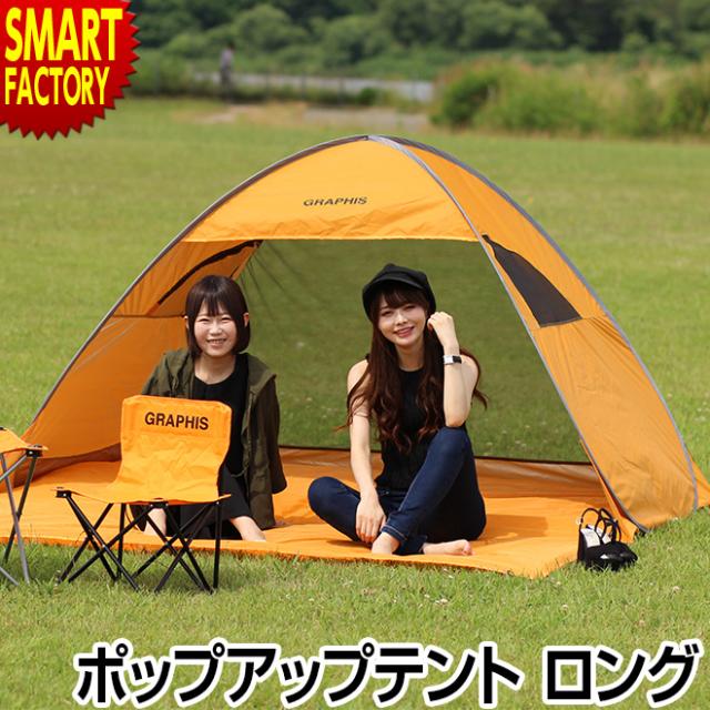 テント ワンタッチ ロング ポップアップテント 窓2つ UVカット 2人用 3人用 ワンタッチテント サンシェードテント ポップアップ 簡易テント 日除けテント サンシェード UV アウトドア レジャー キャンプ 持ち運び 簡単 日よけ バーベキュー GRAPHIS グラフィス 送料無料