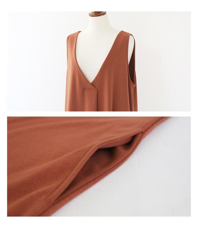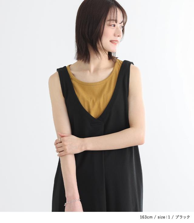 『Vネックジャンパースカート』 ※メール便可※【10】[ ジャンパースカート レディース ジャンスカ ロング ワンピース ノースリーブ 前後Vネック タック カットソー 無地 きれいめ 着回し wen0025]