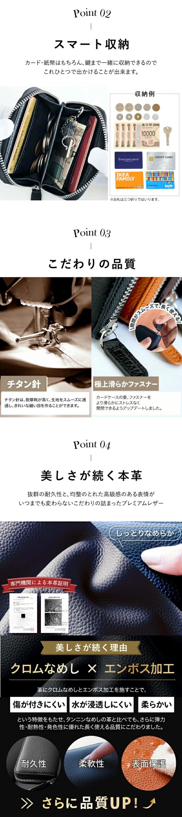 カード・紙幣・コインはもちろん、キーチェーン搭載で鍵も一緒に持ち歩くことができます。