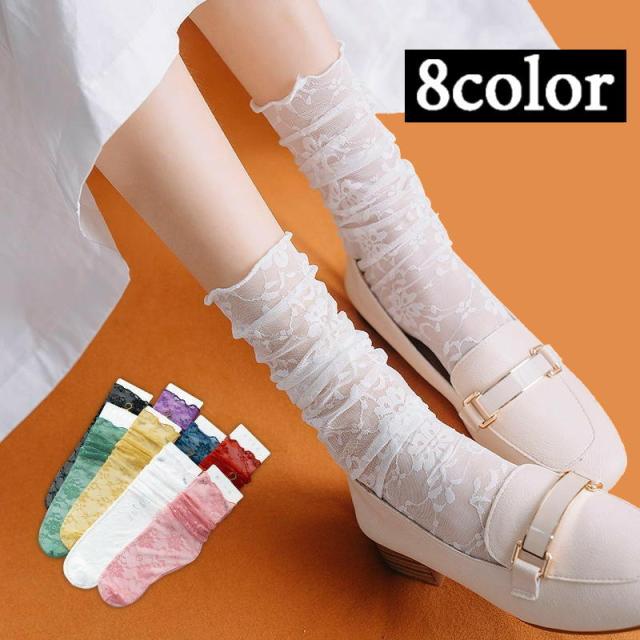 クルーソックス レディース 女性用 靴下 くつ下 ソックス レース フラワー シースルー 透け パンプス おしゃれ かわいい ガ