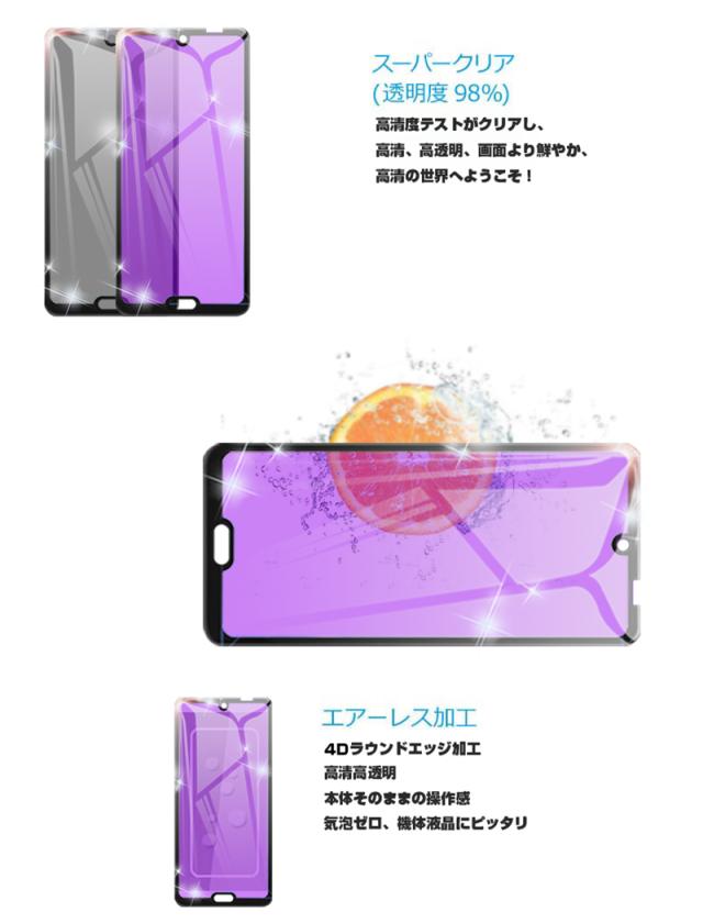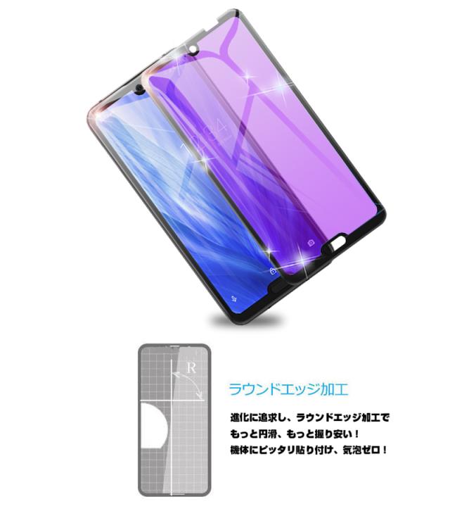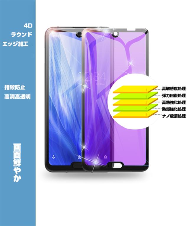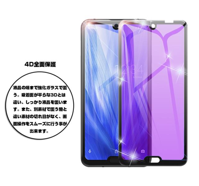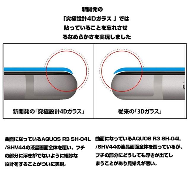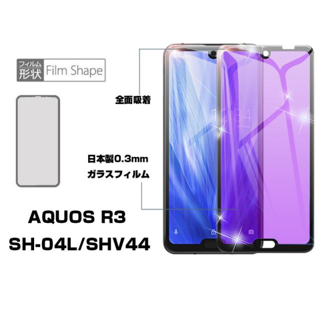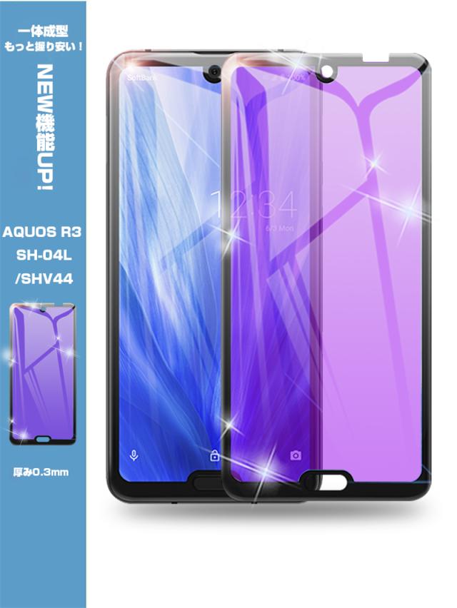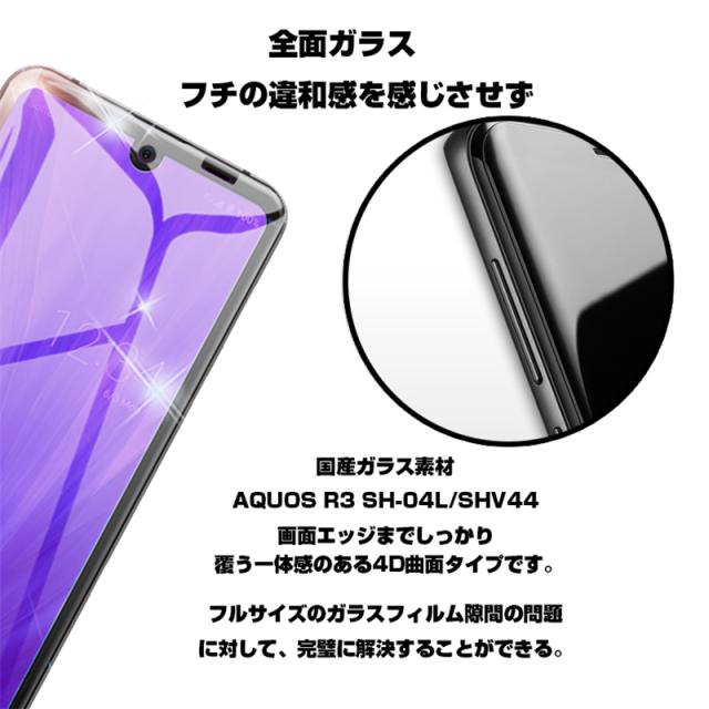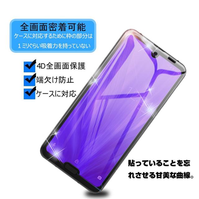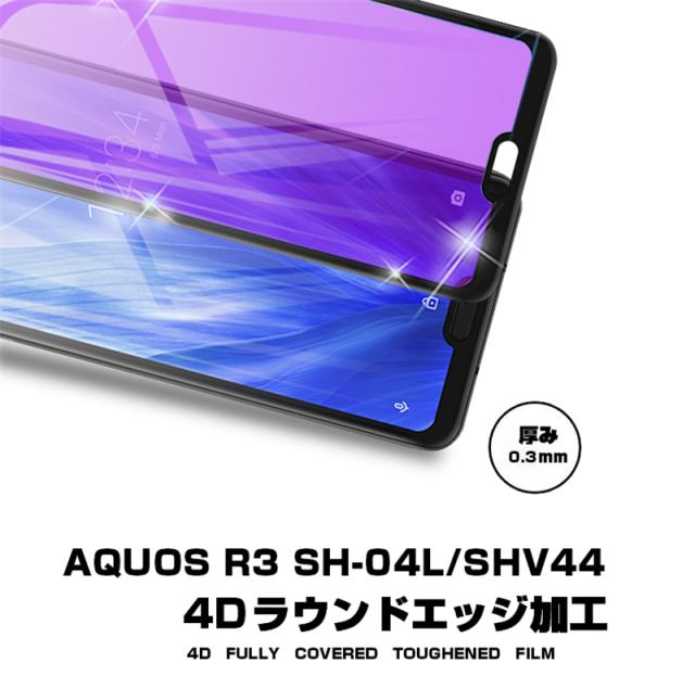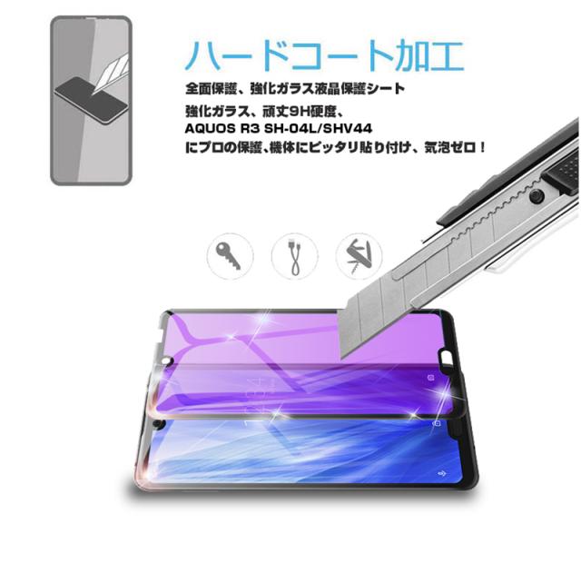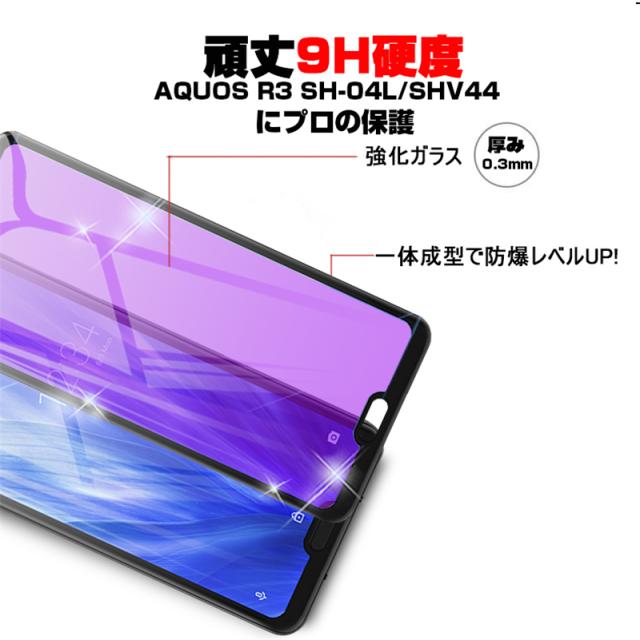【2枚セット】AQUOS R3 SHV44 4D 強化ガラス保護フィルム ブルーライトカット AQUOS R3 SH-04L 4D曲面 液晶保護ガラスシート 全面保護