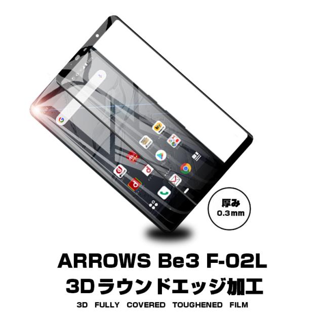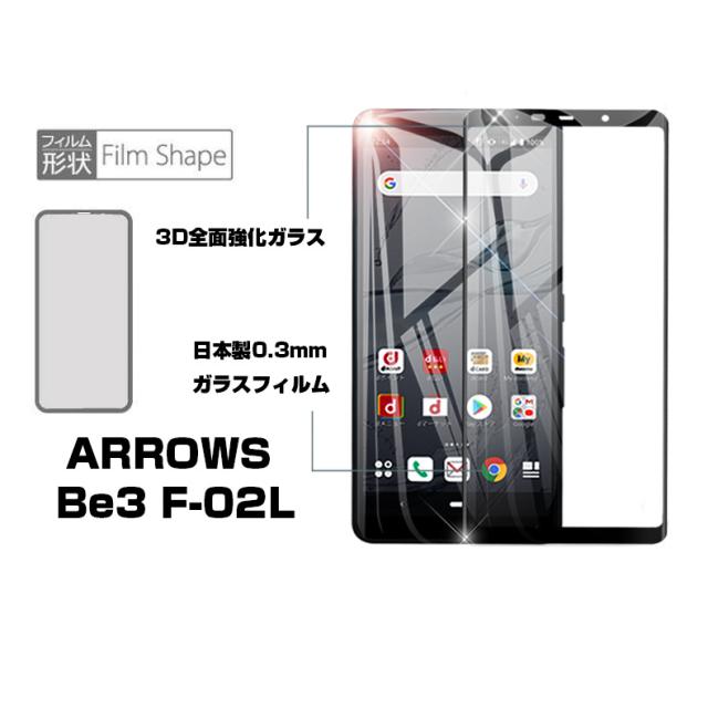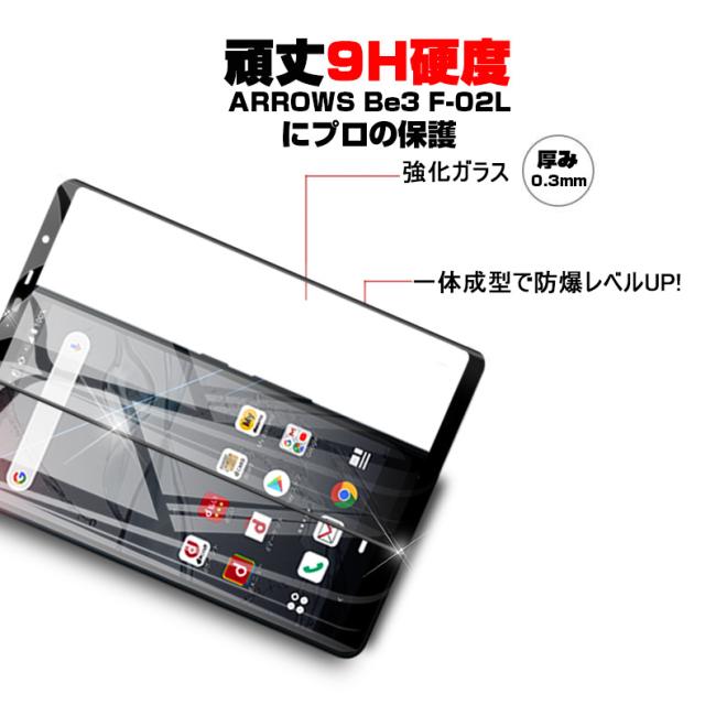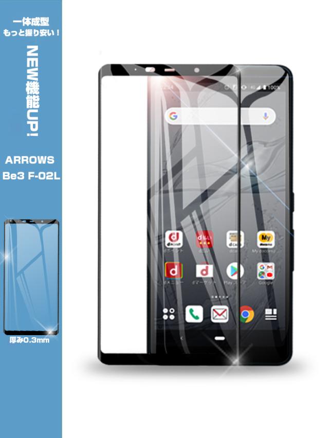 【2枚セット】docomo Arrows Be3 F-02L 全面保護シール ARROWS Be3 F-02L 強化ガラス保護フィルム 液晶保護ガラスシート 画面保護