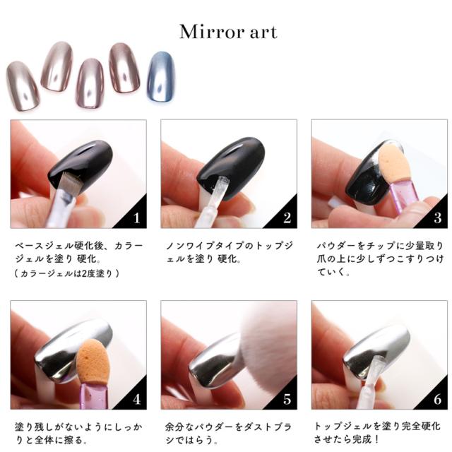 ■ノンワイプトップジェルを硬化した後にパウダーを擦り付ければ…『ミラー』に!