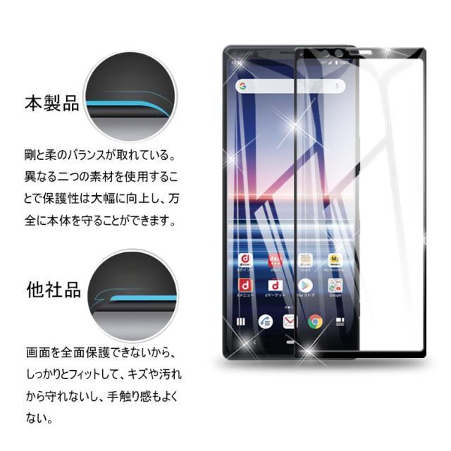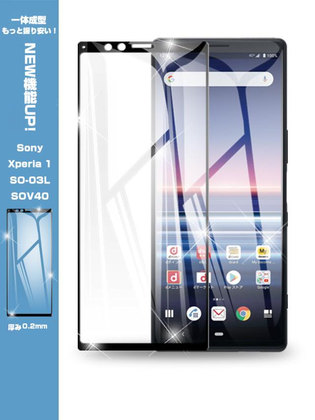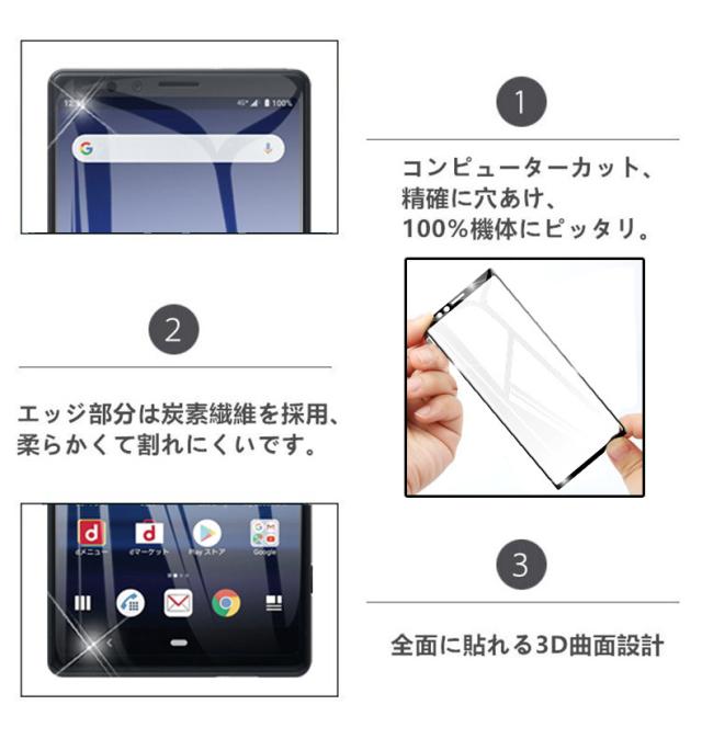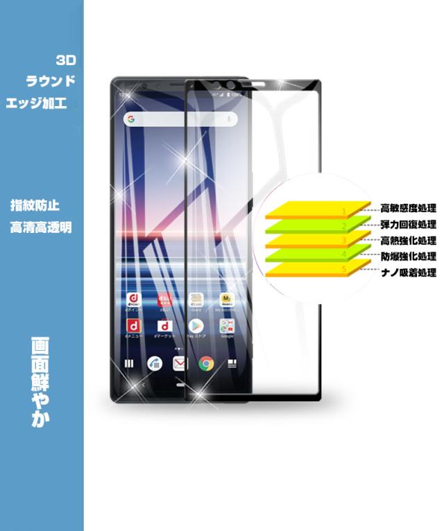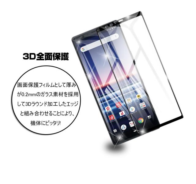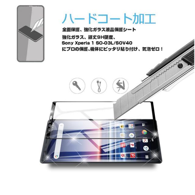 【2枚セット】Xperia 1 保護フィルム 液晶保護シート au SOV40 画面保護シール docomo SO-03L 強化ガラスフィルム 3D全面保護 衝撃吸収