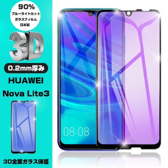 【2枚セット】HUAWEI nova lite 3 ブルーライトカット強化ガラス保護フィルム 曲面画面保護ガラスシール HUAWEI ソフトフレーム液晶保護