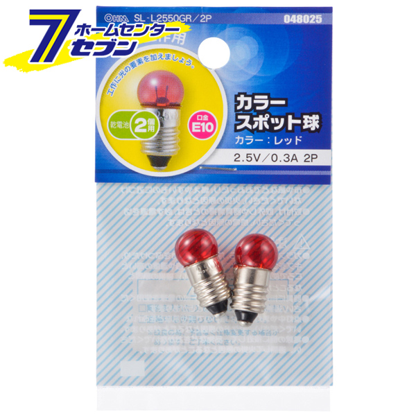 「カラースポット球 E10 0.3A レッド 2個入 [品番]04-8025 SL-L2550GR/2P オーム電機」はホームセンターセブンが販売しております。