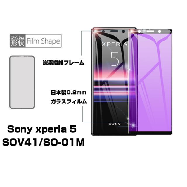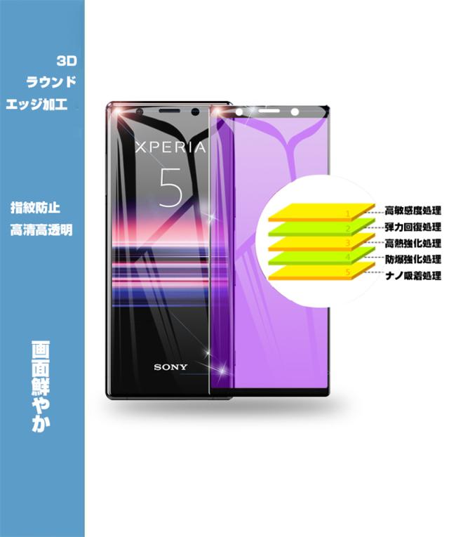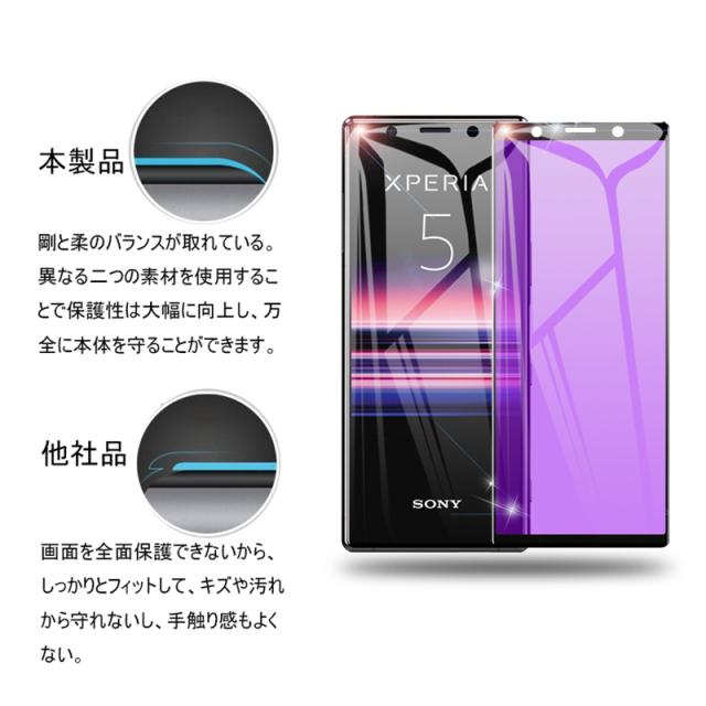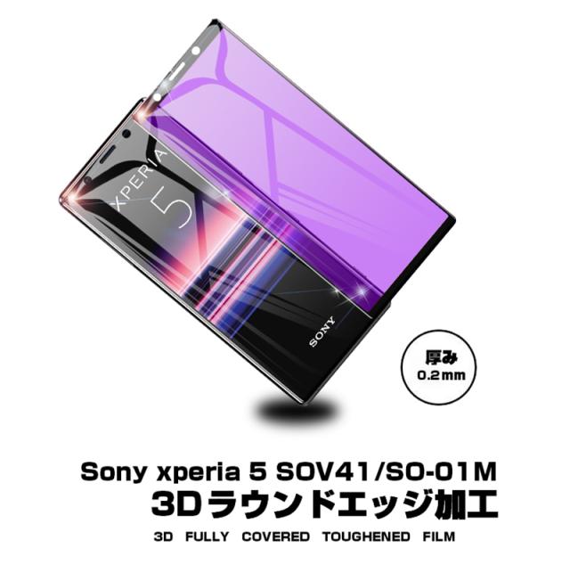 【2枚セット】Xperia 5 SOV41 / SO-01M / 901SO / J9260 ガラスフィルム ブルーライトカット 液晶保護 ガラスシート スマホフィルム 3D