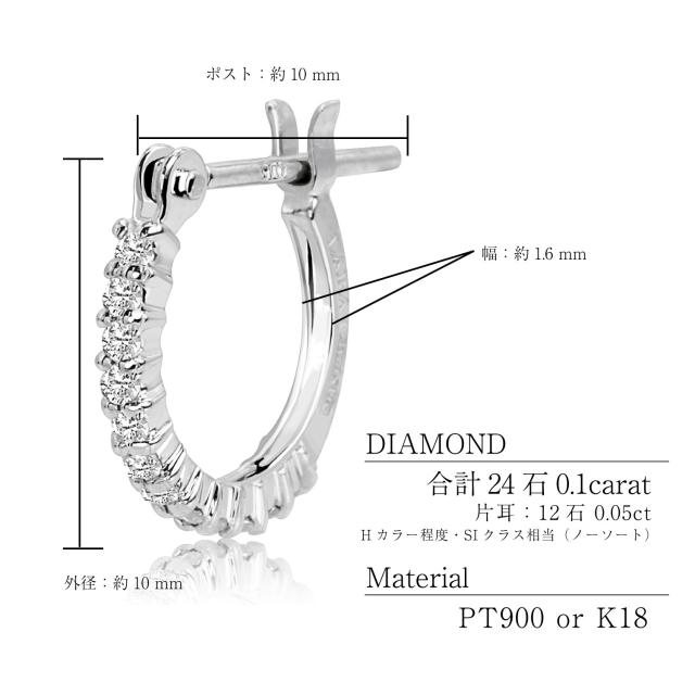 石:天然ダイヤモンド 12石×両耳計24石0.1ctUP (Hカラー程度/SIクラス相当)