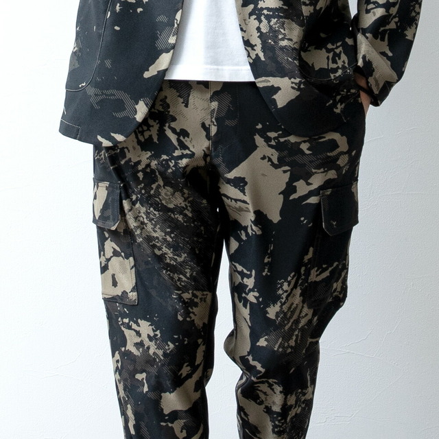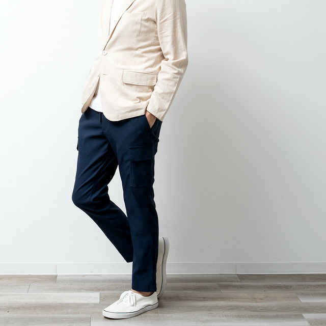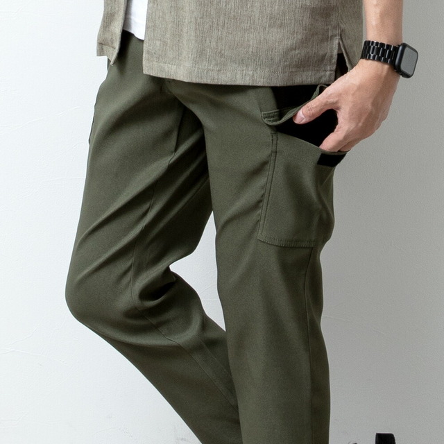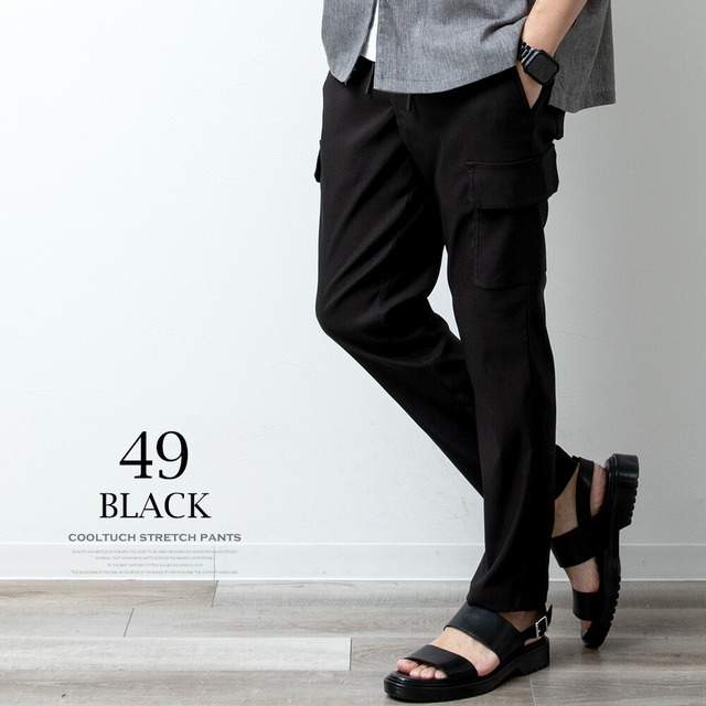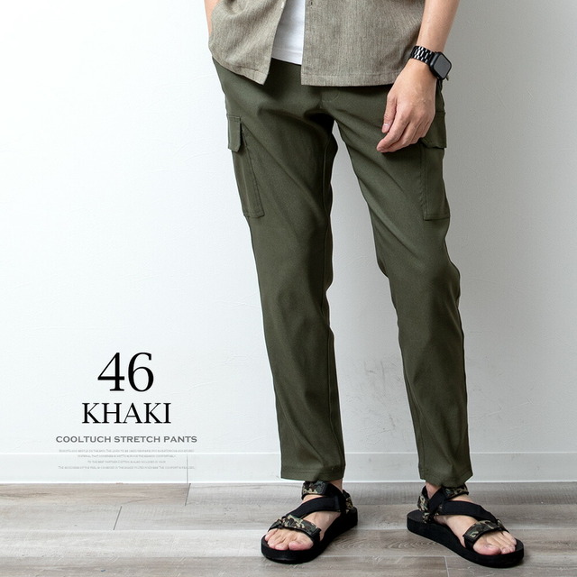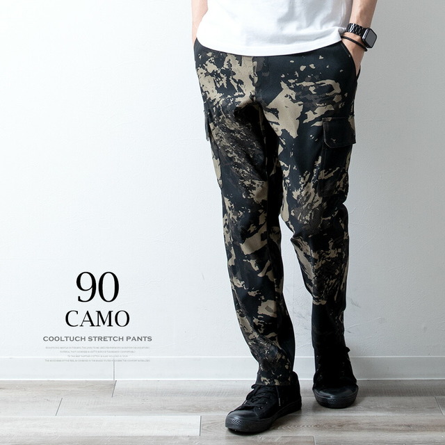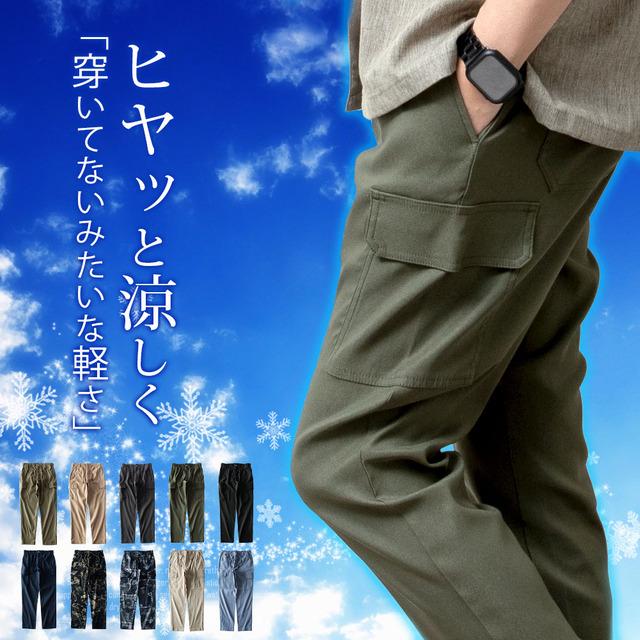 カーゴパンツ メンズ アンクル 夏 涼しいパンツ 接触冷感 ひんやり ストレッチ イージーパンツ スリム カーゴ アンクルパンツ 軽量 春夏 ゴムウエスト 総柄 迷彩柄