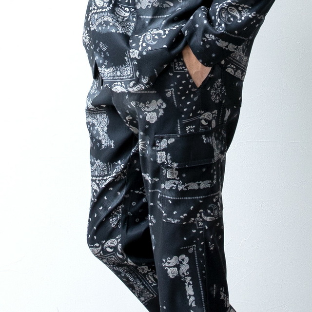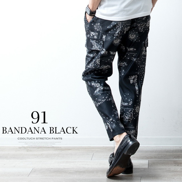 カーゴパンツ メンズ アンクル 夏 涼しいパンツ 接触冷感 ひんやり ストレッチ イージーパンツ スリム カーゴ アンクルパンツ 軽量 春夏 ゴムウエスト 総柄 迷彩柄 バンダナ ペイズリー カモフラ M L LL XL 大きいサイズ 全8色 涼しい