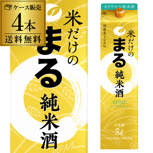 送料無料 1本あたり1,680円税別 日本酒 辛口 白鶴 米だけのまる 純米酒 3L 13度 清酒 3000ml 兵庫 白鶴酒造 酒