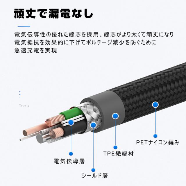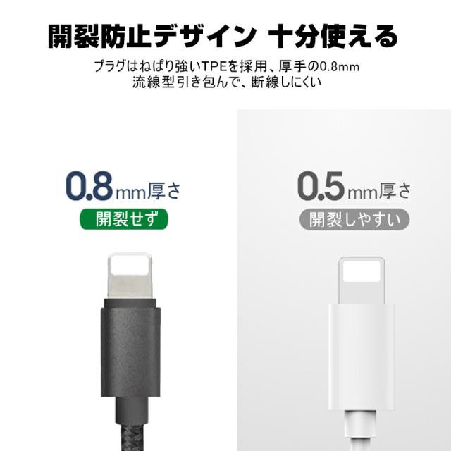 【厚手のプラグ設計】耐久性の高い24本編組ナイロンで編み上げ、またプラグはねぱり強い厚手の