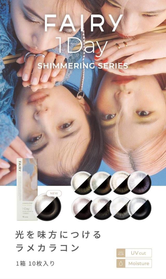 フェアリー ワンデー シマーリング 1箱10枚 14.2mm 14.5mm 度なし 度あり カラコン Fairy 1day Shimmering 水光感 ラメ UVカット 低含水 おまけ付き♪