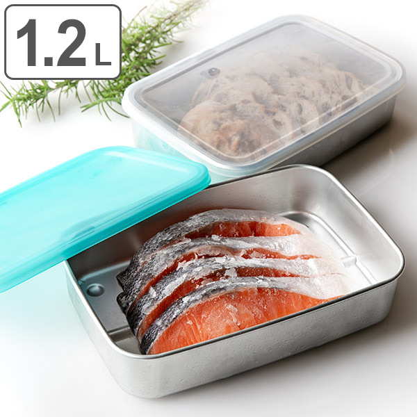 保存容器 アルミ製 急速冷凍 1.2L Lサイズ ( ストッカー フードコンテナ 食品保存 フードストッカー 冷凍保存 冷蔵保存 角型容器 蓋付き 下ごしらえ 長方形 角型 スタッキング )