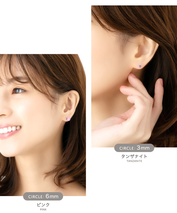 さりげなくも美しい輝きを放つラウンドカットの「サークルタイプ」とプリンセスカットを施した「スクエアタイプ」の2種類で各6色から選べるラインナップ。