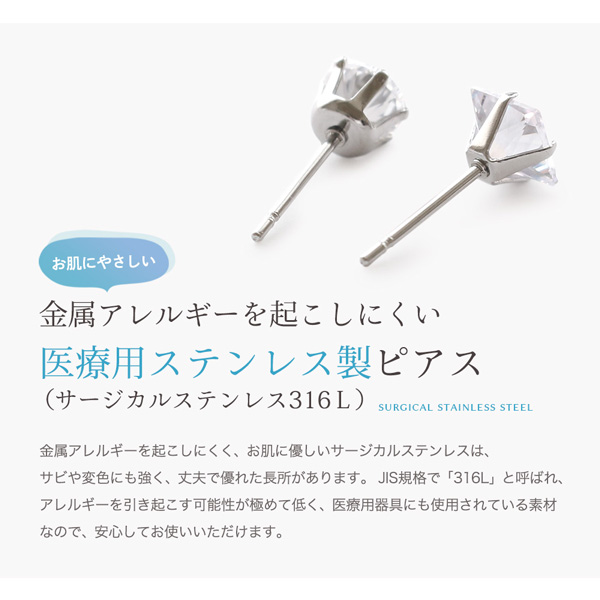| 素材 | サージカルステンレス316L / キュービックジルコニア |
