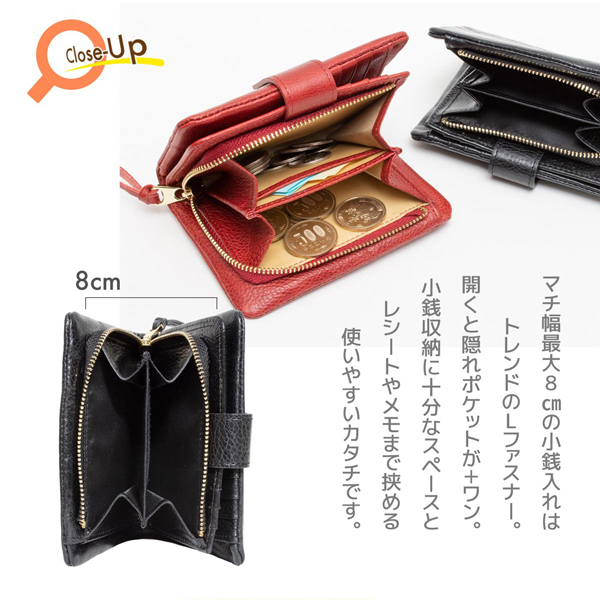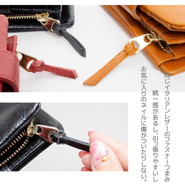 - 小銭入れのファスナーが取れてしまい、、使いずらい。せっかく赤い可愛いいのを買ったのに残念です。