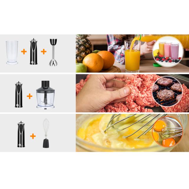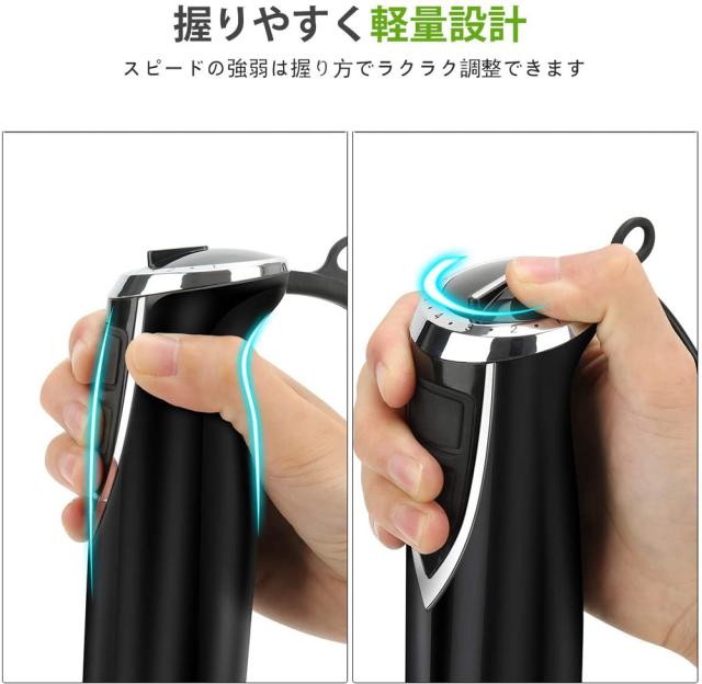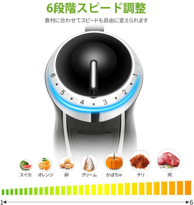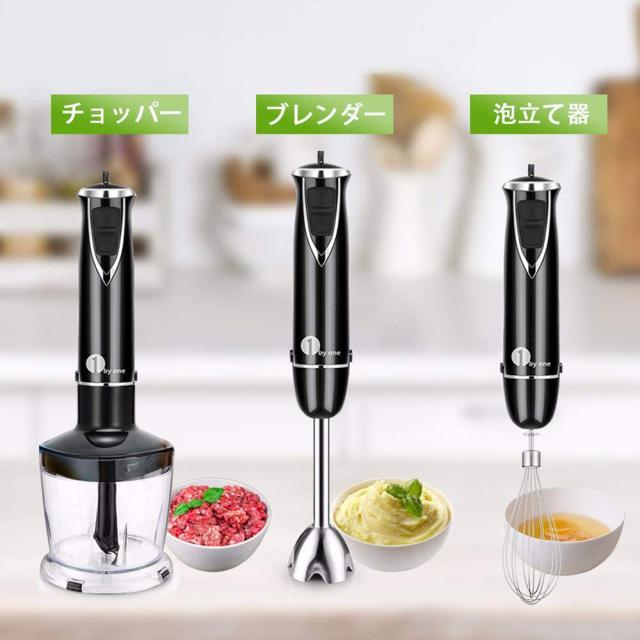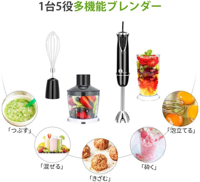 ハンドブレンダー 1台5役 6段階スピード調整可能 ハンドミキサー 離乳食 フードプロセッサー 泡だて器 水洗い可能 チタンメッキステンレス 簡単操作 ミンチ肉 スムージー ホイップクリーム
