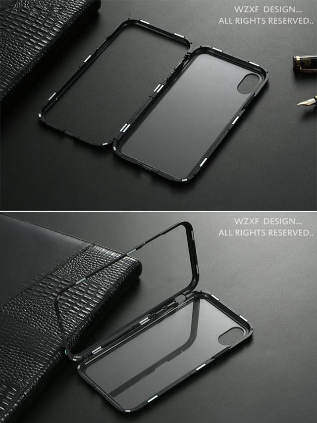 iPhone XS Max iPhone XR 保護ケース iphone8plus PC高硬度マグネットフレーム iphone7plus 強力磁気吸着 iphone6 背面強化ガラスケース
