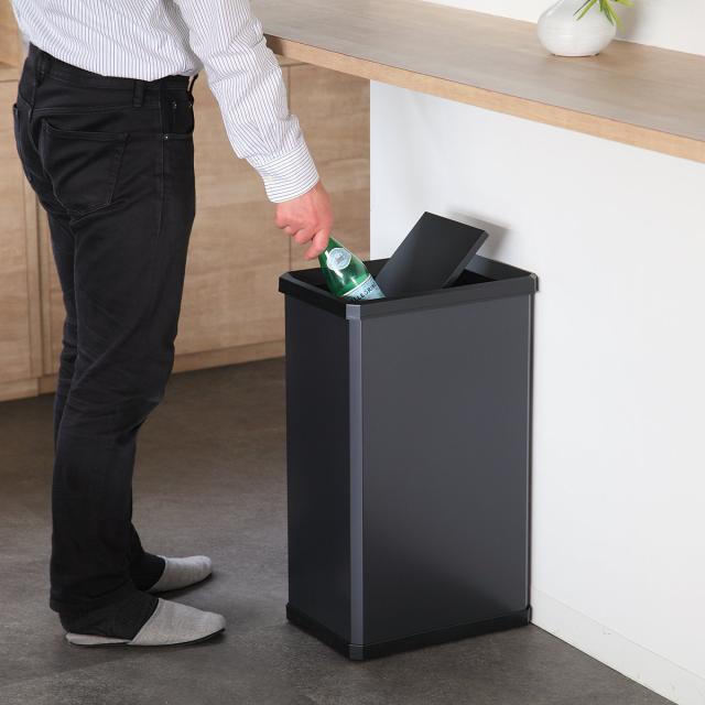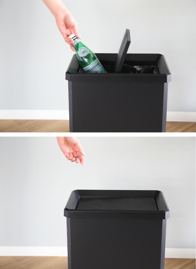 360度回転してスムーズに動かせるスイング式のフタです。細かいゴミを捨てたい時もサッとフタがスイングして開閉します。外側からゴミが見えないので、インテリア性も損ないません。