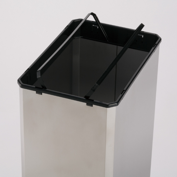 シャープなスクエアフォルムと美しいステンレスのコンビネーションが、スタイリッシュなゴミ箱です。落ち着いた上質な雰囲気が、設置場所を選ばず、様々な施設にマッチします。ステンレス製のため、サビにも強く、水回りにも使用できます。