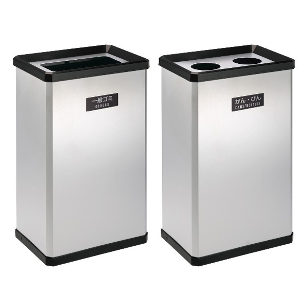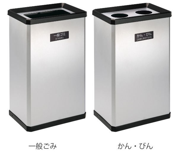 分別回収が可能です。「一般ゴミ用」と「かん・びん用」の2タイプがあります。スリムなデザインなので、限られた場所にも置くことができます。