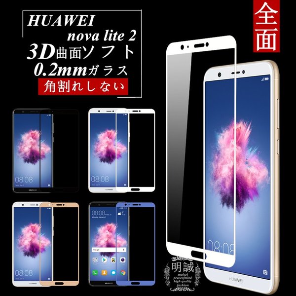 【2枚セット】HUAWEI nova lite 2 強化ガラス保護フィルム 3D全面保護 極薄0.2mm 曲面 ガラスフィルム ソフトフレーム
