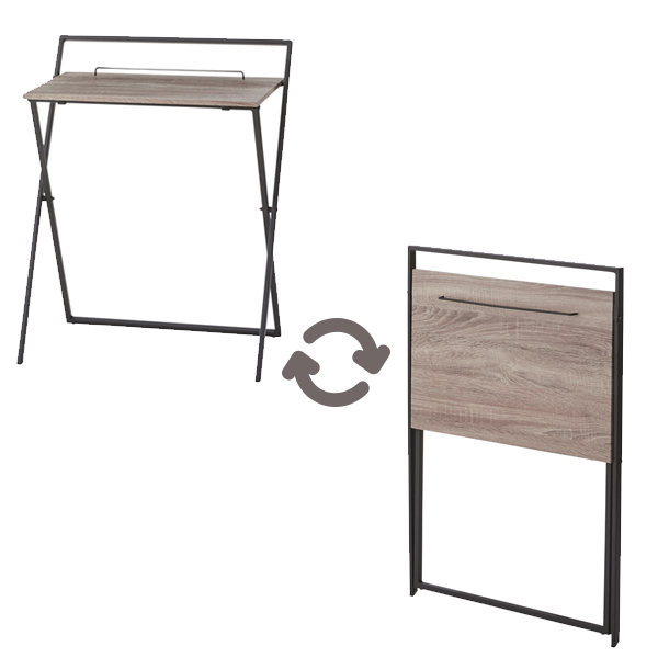 スタイリッシュでシンプルなデザインの折りたたみ式デスクです。使わない時は、ちょっとした隙間に収納できます。