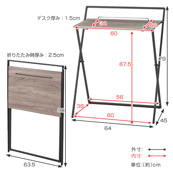 デスク 幅64cm 折りたたみ 机 折り畳み つくえ 収納 コンパクト ワークデスク 木目調 勉強机 学習机 テレワーク 在宅ワーク ( パソコンデスク PCデスク 省スペース 幅 約 60 ワーキングデスク オフィスデスク スリム )