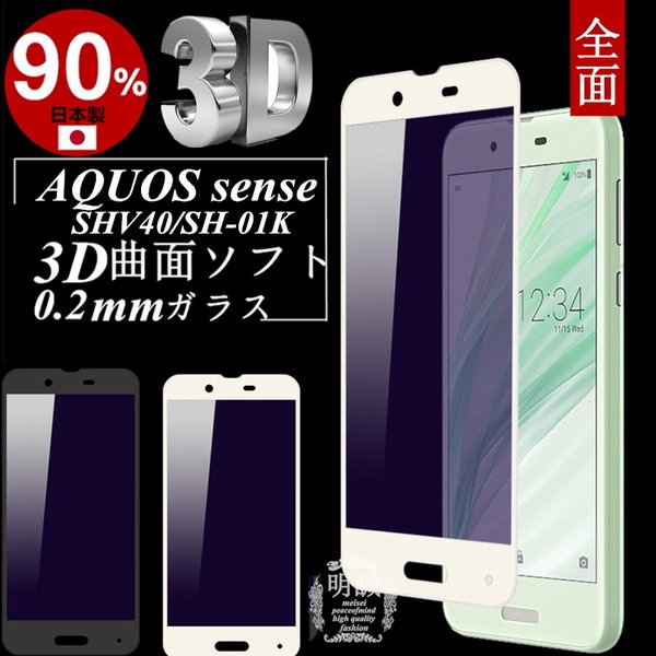 【2枚セット】AQUOS sense SH-01K ブルーライトカット 強化ガラス保護フィルム 極薄0.2mm SHV40 3D 曲面 ソフトフレーム 送料無料