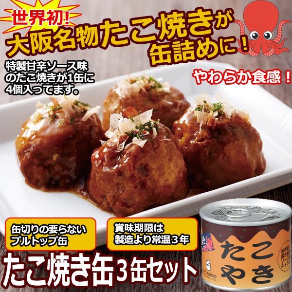 ホワイトデー プレゼントたこ焼き缶詰3缶セット(たこやき 常温保存3年 mr.kanso 缶詰バー 缶詰専門店 大阪名物 大阪ソウルフード 保存食 プルトップ缶 ローリングストック バレンタイン )